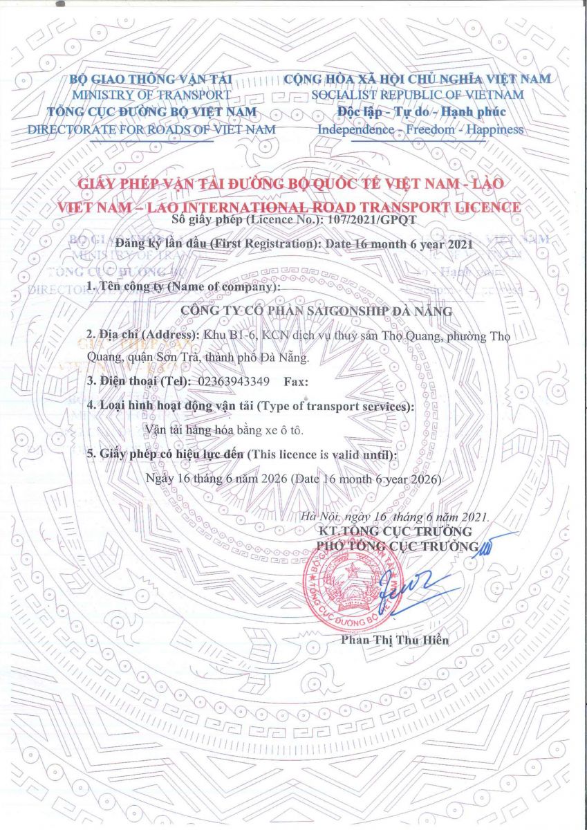 GIẤY PHÉP VẬN TẢI QUỐC TẾ LÀO